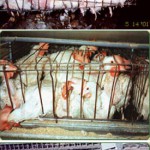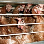 أما الإناث فيتم حبسها في أقفاص صغيرة لا تتمكن فيها حتى من فتح أجنحتها، بينما أرضية القفص عبارة عن شبكة منحنية تسبب للدجاج الجروح والتشوهات والشدة النفسية. وتهاجم الدجاجات بعضها البعض لقسوة ظروف حبسها، مما يستدعي قطع مناقيرها بالسكاكين الحامية في محاولة لتقليص الخسائر التي تلحق بأصحاب المزارع من جراء هجومية الدجاج، وعملية القطع مؤلمة ولها آثار نفسية لكون أنسجة المنقار تحوي الخلايا العصبية.